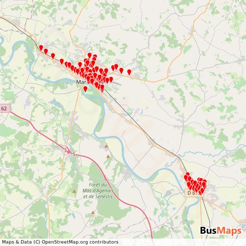 Evalys Mobilites Val de Garonne operates in the following cities: Marmande, Tonneins.