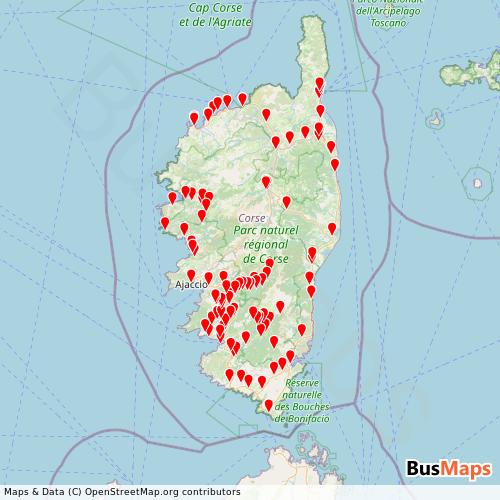 Transport Régulier Corse du Sud operates in the following cities: Ajaccio, Bastia, Sartene, Corte, Figari, Ota, Zonza.