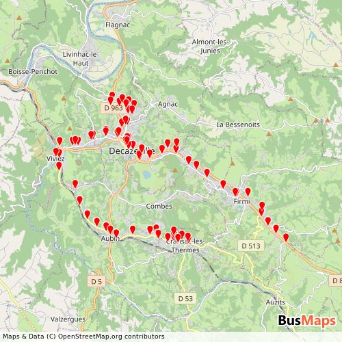 Transports Urbains du Bassin operates in the following cities: Decazeville.