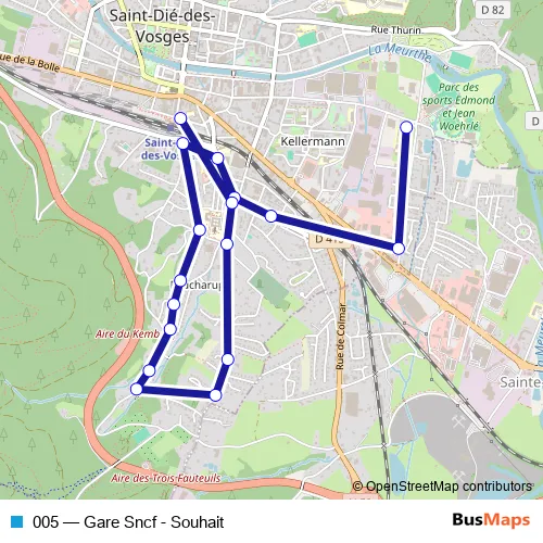 See why over 2 million users trust and consider busmaps.com as the best public transport website. busmaps gives you Saint-Die-des-Vosges Buses suggested routes, real-time bus tracker, line route maps in Saint-Die-des-Vosges, and helps to find the closest 005 bus stops near you. No internet available? Download an offline PDF map and bus schedule for the 005 bus to take on your trip.