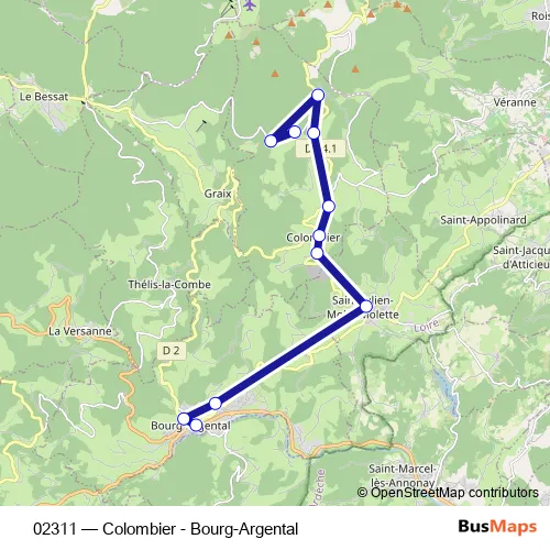 Click here to view the nearest 02311 - Colombier - Bourg-Argental bus stop.
