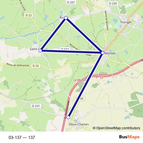 See why over 2 million users trust and consider busmaps.com as the best public transport website. busmaps gives you Le Montet Buses suggested routes, real-time bus tracker, line route maps in Le Montet, and helps to find the closest 03-137 bus stops near you. No internet available? Download an offline PDF map and bus schedule for the 03-137 bus to take on your trip.