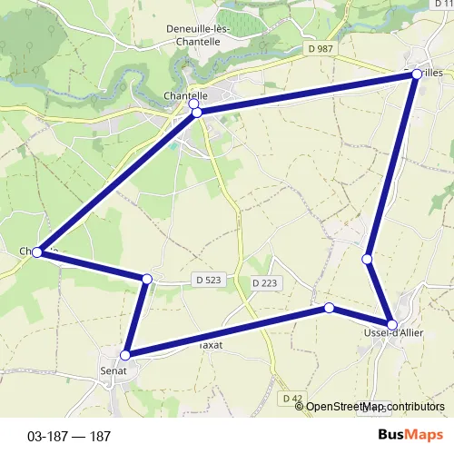 See why over 2 million users trust and consider busmaps.com as the best public transport website. busmaps gives you Chantelle Buses suggested routes, real-time bus tracker, line route maps in Chantelle, and helps to find the closest 03-187 bus stops near you. No internet available? Download an offline PDF map and bus schedule for the 03-187 bus to take on your trip.