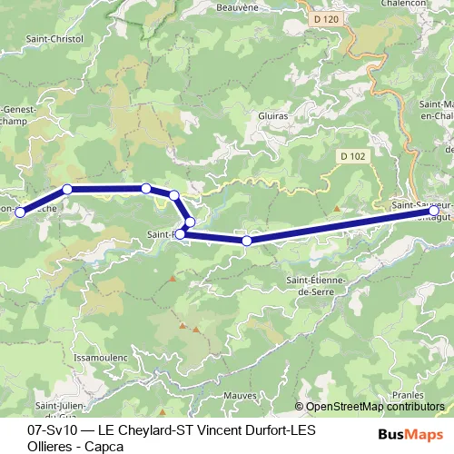 Bus 07-Sv10 - LE Cheylard-ST Vincent Durfort-LES Ollieres - Capca Schedule in Privas