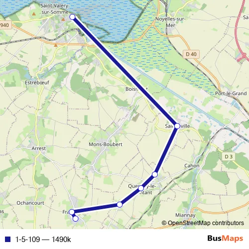 The first stop of the 1-5-109 bus route is Franleu - Rues Mesnil Egypte and the last stop is Saint-Valery-SUR-Somme - Collège de la Baie de Somme. 1-5-109 (1490k) is operational during en semaine.