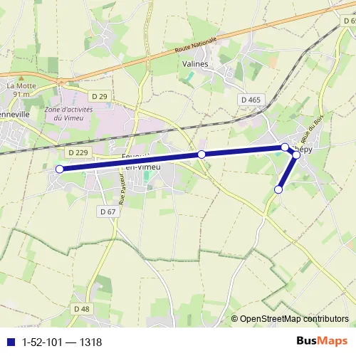 The first stop of the 1-52-101 bus route is Chepy - Ferme Leleu and the last stop is Feuquieres-EN-Vimeu - Collège Segpa Gaston Vasseur. 1-52-101 (1318) is operational during en semaine.
