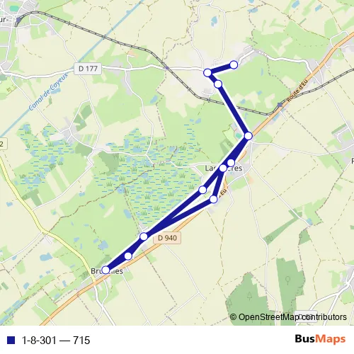 The first stop of the 1-8-301 bus route is Lancheres - Wathiehurt - Ecole maternelle and the last stop is Lancheres - Wathiehurt - Ecole maternelle. 1-8-301 (715) is operational during tous les jours.