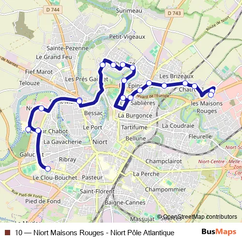 Bus 10 - Niort Maisons Rouges - Niort Pôle Atlantique in Niort: Stops & Timetable