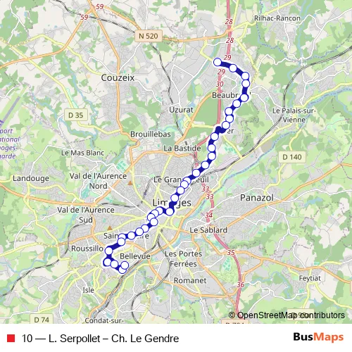 Bus 10 - L. Serpollet – Ch. Le Gendre: Full Schedule in Limoges