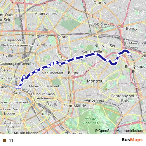 See why over 2 million users trust and consider busmaps.com as the best public transport website. busmaps gives you Paris Metro Lines suggested routes, real-time bus tracker, line route maps in Paris, and helps to find the closest 11 metro stops near you. No internet available? Download an offline PDF map and bus schedule for the 11 metro to take on your trip.