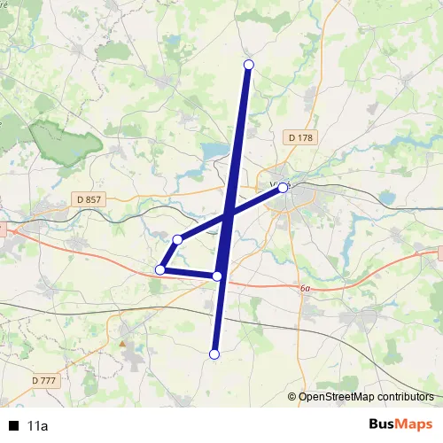 The first stop of the 11a bus route is Vergeal - Centre and the last stop is Vitre - Gare. 11a is operational during tous les jours.