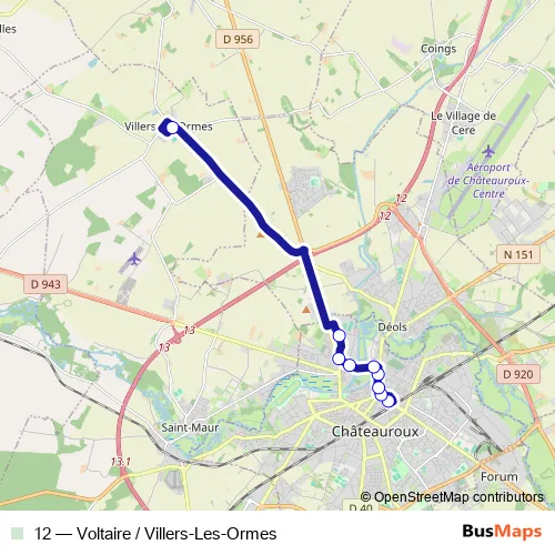 Bus 12 - Voltaire / Villers-Les-Ormes in Chateauroux: Stops & Timetable