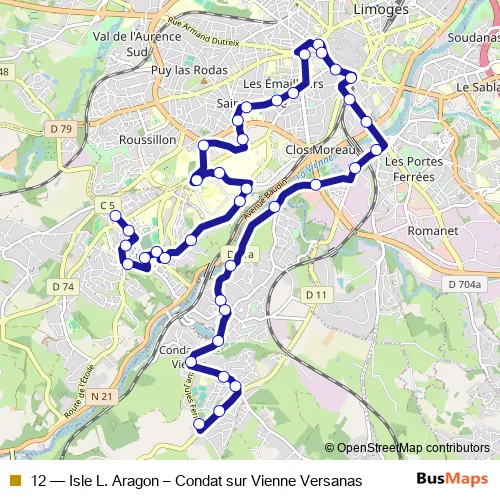 Bus 12 - Isle L. Aragon – Condat sur Vienne Versanas in Limoges: Stops & Timetable