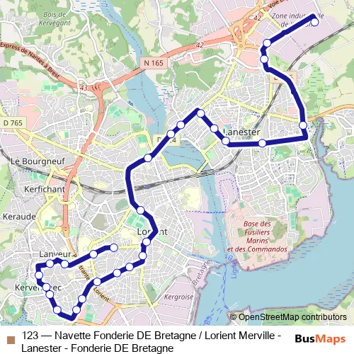 Bus 123 - Navette Fonderie DE Bretagne / Lorient Merville - Lanester - Fonderie DE Bretagne: Full Schedule in Lorient