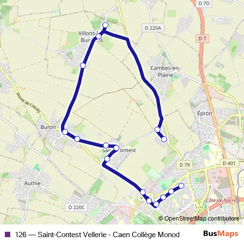 Click here to view the nearest 126 - Saint-Contest Vellerie - Caen Collège Monod bus stop.