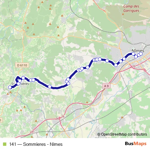 Click here to view the nearest 141 - Sommieres - Nimes bus stop.