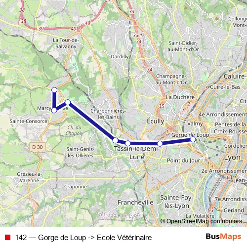 Bus 142 - Gorge de Loup -> Ecole Vétérinaire Schedule in Lyon