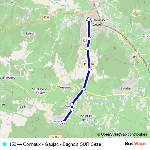 See why over 2 million users trust and consider busmaps.com as the best public transport website. busmaps gives you Connaux Buses suggested routes, real-time bus tracker, line route maps in Connaux, and helps to find the closest 150 bus stops near you. No internet available? Download an offline PDF map and bus schedule for the 150 bus to take on your trip.