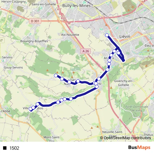 See why over 2 million users trust and consider busmaps.com as the best public transport website. busmaps gives you Angres Buses suggested routes, real-time bus tracker, line route maps in Angres, and helps to find the closest 1502 bus stops near you. No internet available? Download an offline PDF map and bus schedule for the 1502 bus to take on your trip.