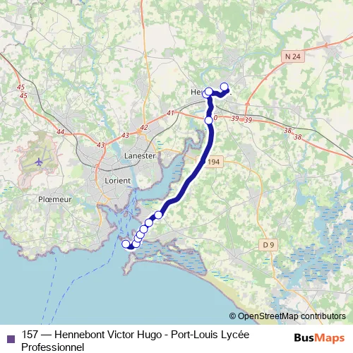 Click here to view the nearest 157 - Hennebont Victor Hugo - Port-Louis Lycée Professionnel bus stop.
