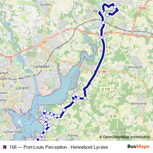 Bus 158 - Port-Louis Perception - Hennebont Lycées: Full Schedule in Lorient