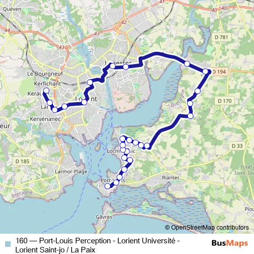 Bus 160 - Port-Louis Perception - Lorient Université - Lorient Saint-jo / La Paix: Full Schedule in Lorient