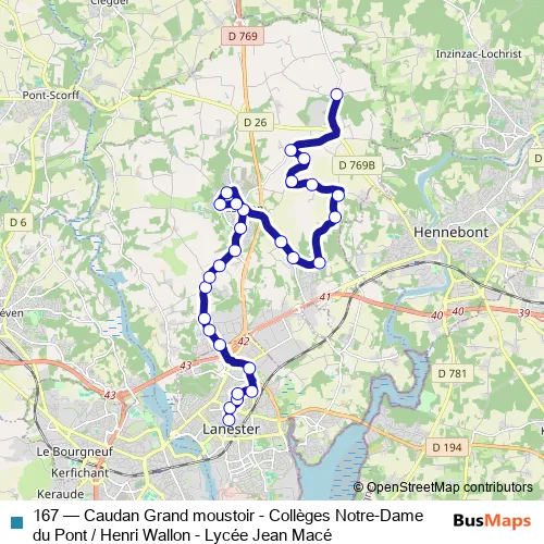 Bus 167 - Caudan Grand moustoir - Collèges Notre-Dame du Pont / Henri Wallon - Lycée Jean Macé: Full Schedule in Lorient
