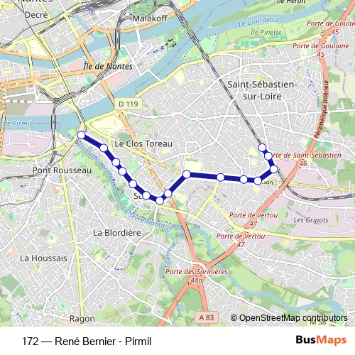 See why over 2 million users trust and consider busmaps.com as the best public transport website. busmaps gives you Nantes Buses suggested routes, real-time bus tracker, line route maps in Nantes, and helps to find the closest 172 bus stops near you. No internet available? Download an offline PDF map and bus schedule for the 172 bus to take on your trip.