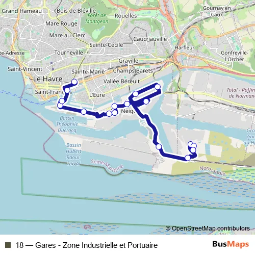 Bus 18 - Gares - Zone Industrielle et Portuaire in Le Havre: Stops & Timetable
