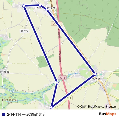 The first stop of the 2-14-114 bus route is Forest-Montiers - 22 Rue de la Ville and the last stop is Forest-Montiers - 22 Rue de la Ville. 2-14-114 (2039g|1348) is operational during tous les jours.