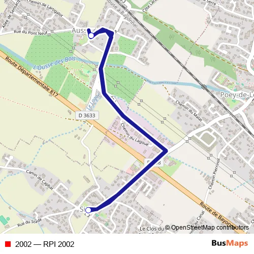 The first stop of the 2002 bus route is Aussevielle Ecole Maternelle and the last stop is Aussevielle Ecole Maternelle. 2002 (RPI 2002) is operational during tous les jours.