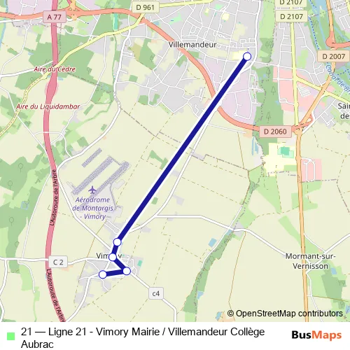 Click here to view the nearest 21 - Ligne 21 - Vimory Mairie / Villemandeur Collège Aubrac bus stop.