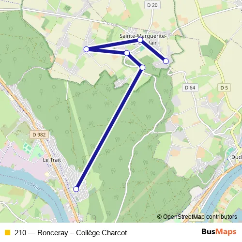 See why over 2 million users trust and consider busmaps.com as the best public transport website. busmaps gives you Sainte-Marguerite-sur-Duclair Buses suggested routes, real-time bus tracker, line route maps in Sainte-Marguerite-sur-Duclair, and helps to find the closest 210 bus stops near you. No internet available? Download an offline PDF map and bus schedule for the 210 bus to take on your trip.