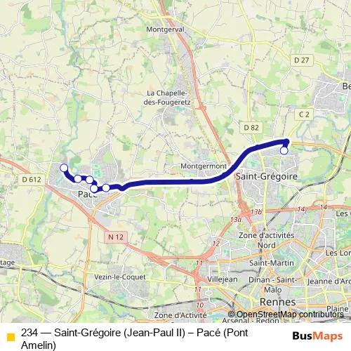 Click here to view the nearest 234 - Saint-Grégoire (Jean-Paul II) – Pacé (Pont Amelin) bus stop.