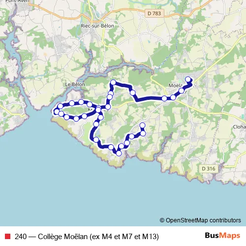 Bus 240 - Collège Moëlan (ex M4 et M7 et M13): Full Schedule in Moelan-sur-Mer