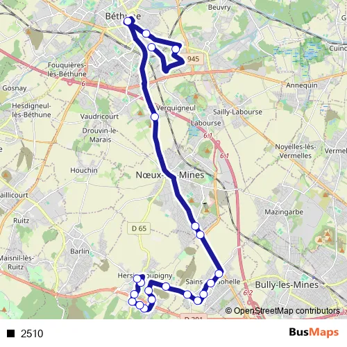See why over 2 million users trust and consider busmaps.com as the best public transport website. busmaps gives you Hersin-Coupigny Buses suggested routes, real-time bus tracker, line route maps in Hersin-Coupigny, and helps to find the closest 2510 bus stops near you. No internet available? Download an offline PDF map and bus schedule for the 2510 bus to take on your trip.