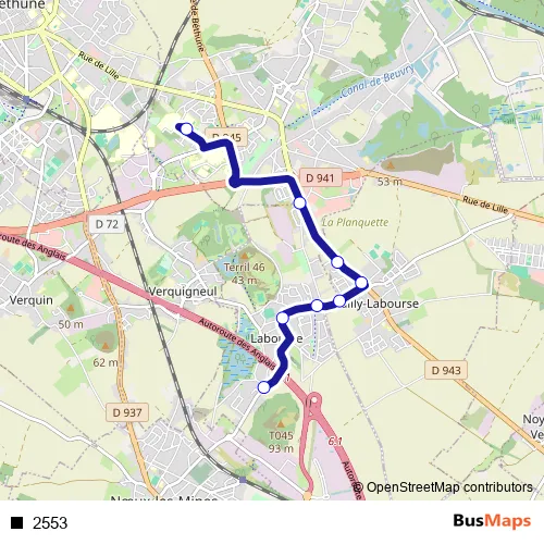 See why over 2 million users trust and consider busmaps.com as the best public transport website. busmaps gives you Labourse Buses suggested routes, real-time bus tracker, line route maps in Labourse, and helps to find the closest 2553 bus stops near you. No internet available? Download an offline PDF map and bus schedule for the 2553 bus to take on your trip.
