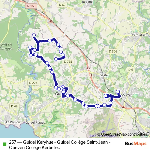 Bus 257 - Guidel Keryhuel- Guidel Collège Saint-Jean - Queven Collège Kerbellec in Lorient: Stops & Timetable