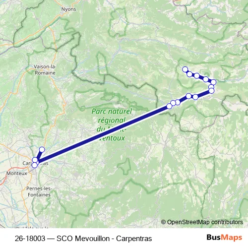 Click here to view the nearest 26-18003 - SCO Mevouillon - Carpentras bus stop.