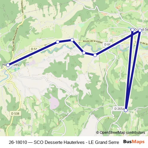 Click here to view the nearest 26-18010 - SCO Desserte Hauterives - LE Grand Serre bus stop.