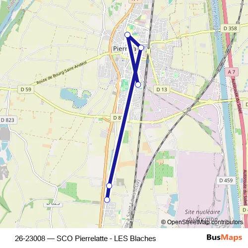 See why over 2 million users trust and consider busmaps.com as the best public transport website. busmaps gives you Pierrelatte Buses suggested routes, real-time bus tracker, line route maps in Pierrelatte, and helps to find the closest 26-23008 bus stops near you. No internet available? Download an offline PDF map and bus schedule for the 26-23008 bus to take on your trip.