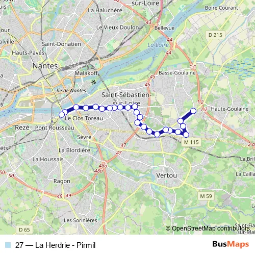 See why over 2 million users trust and consider busmaps.com as the best public transport website. busmaps gives you Nantes Buses suggested routes, real-time bus tracker, line route maps in Nantes, and helps to find the closest 27 bus stops near you. No internet available? Download an offline PDF map and bus schedule for the 27 bus to take on your trip.