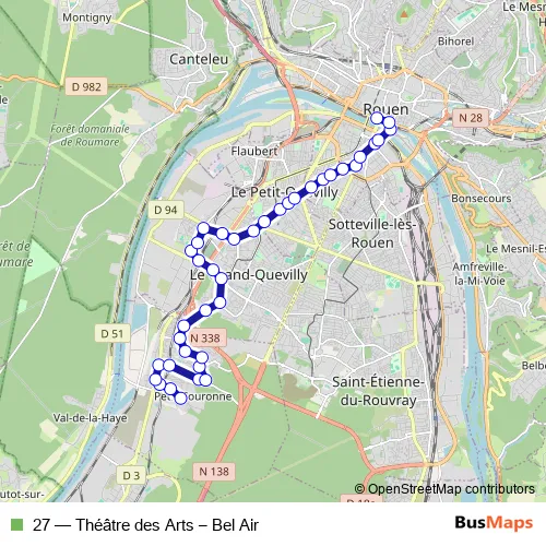 See why over 2 million users trust and consider busmaps.com as the best public transport website. busmaps gives you Rouen Buses suggested routes, real-time bus tracker, line route maps in Rouen, and helps to find the closest 27 bus stops near you. No internet available? Download an offline PDF map and bus schedule for the 27 bus to take on your trip.