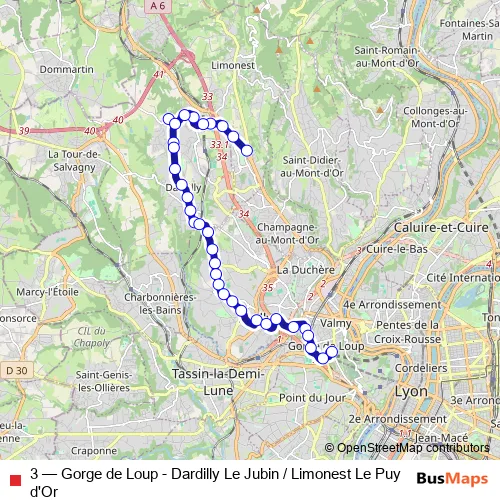 Bus 3 - Gorge de Loup - Dardilly Le Jubin / Limonest Le Puy d'Or: Full Schedule in Lyon