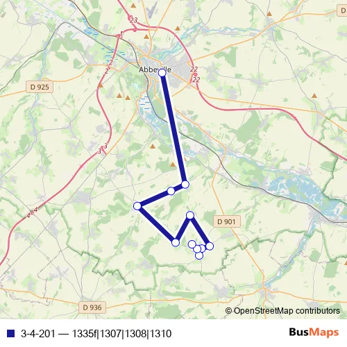 The first stop of the 3-4-201 bus route is Abbeville - Cité scolaire and the last stop is Hallencourt - Carrefour Hocquincourt. 3-4-201 (1335f|1307|1308|1310) is operational during tous les jours.