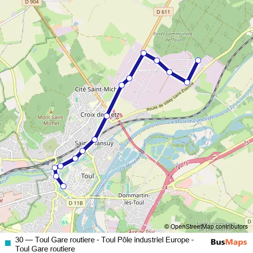 Bus 30 - Toul Gare routiere - Toul Pôle industriel Europe - Toul Gare routiere in Toul: Stops & Timetable