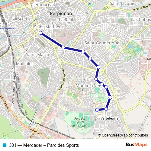 See why over 2 million users trust and consider busmaps.com as the best public transport website. busmaps gives you Perpignan Buses suggested routes, real-time bus tracker, line route maps in Perpignan, and helps to find the closest 301 bus stops near you. No internet available? Download an offline PDF map and bus schedule for the 301 bus to take on your trip.