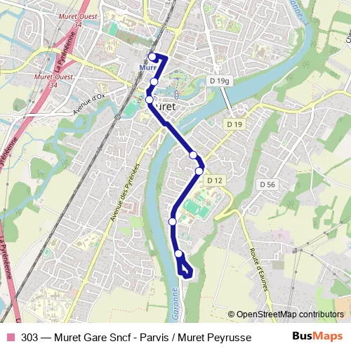 Click here to view the nearest 303 - Muret Gare Sncf - Parvis / Muret Peyrusse bus stop.