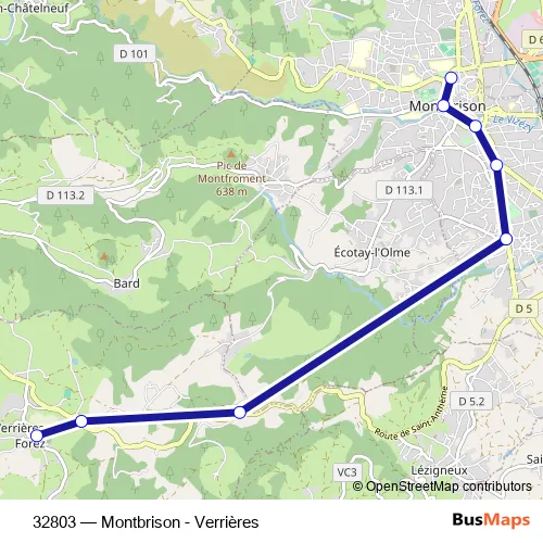 Click here to view the nearest 32803 - Montbrison - Verrières bus stop.