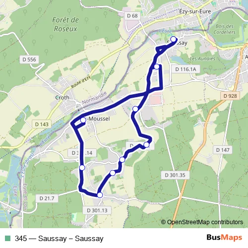 Bus 345 - Saussay – Saussay in Saussay: Stops & Timetable